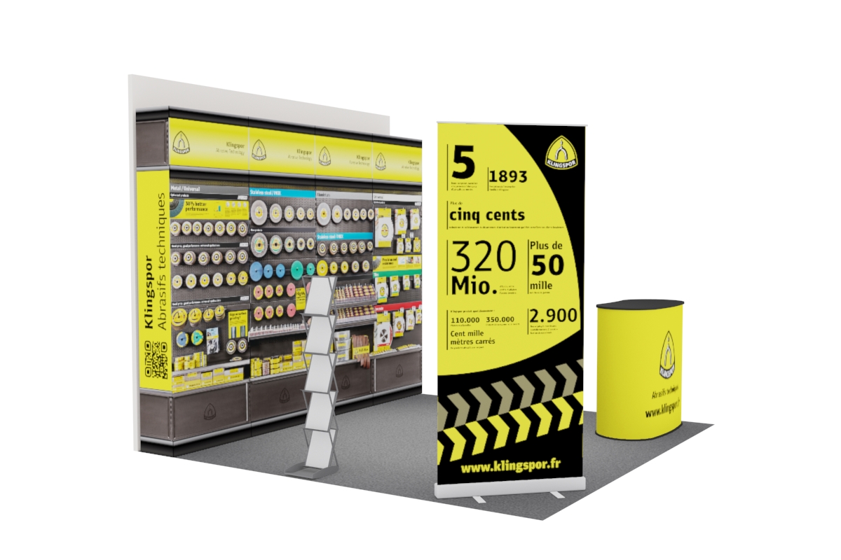 La création design de stand salon adapté à votre budget. Nous vous proposons de nombreuses solutions pour valoriser et exploiter au mieux votre participation à des salons ou des séminaires. Du stand parapluie classique au stand modulaire personnalisable à la conception d’un stand sur mesure, nous vous accompagnons avec créativité et rationalité pour construire la solution optimale qui vous convient.